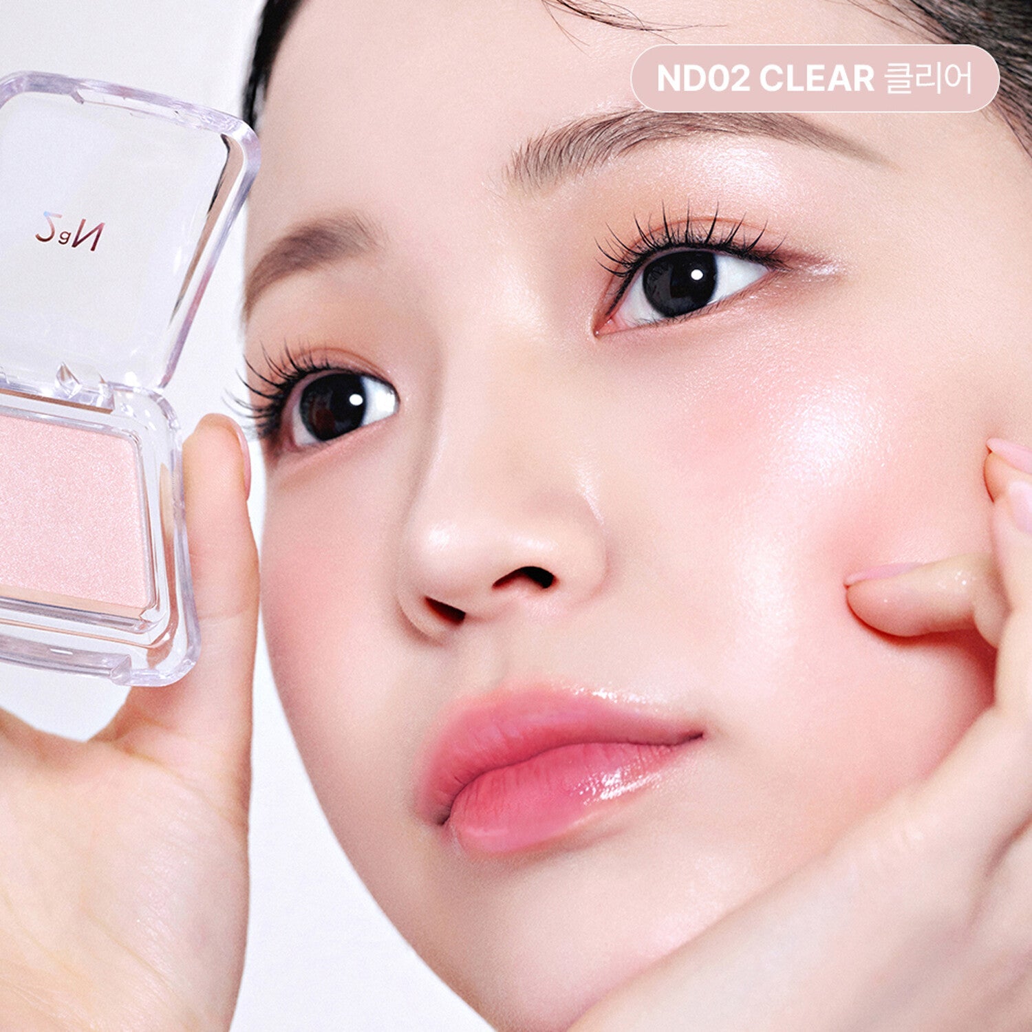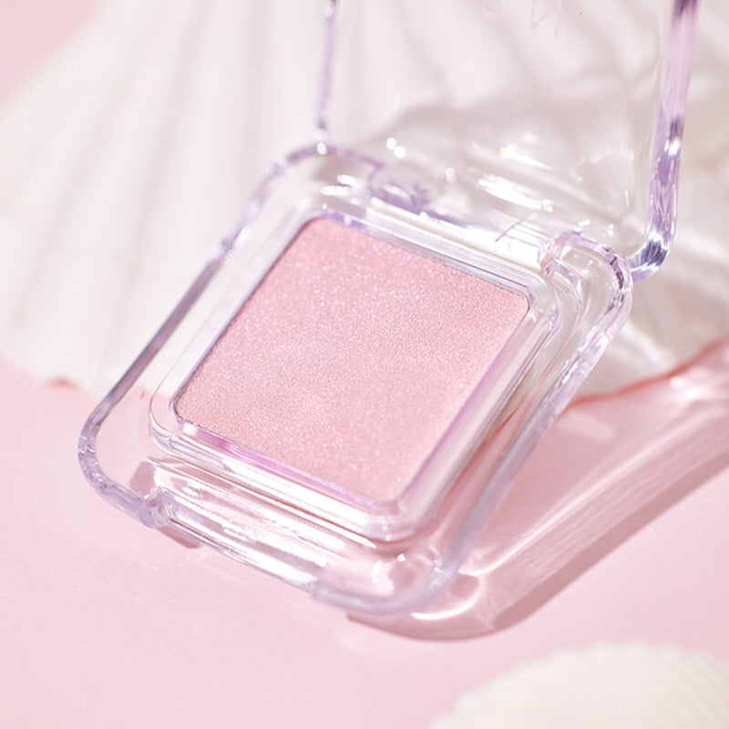 A moisturizing glitter highlighter with a clear, transparent shine as if it contains water. It